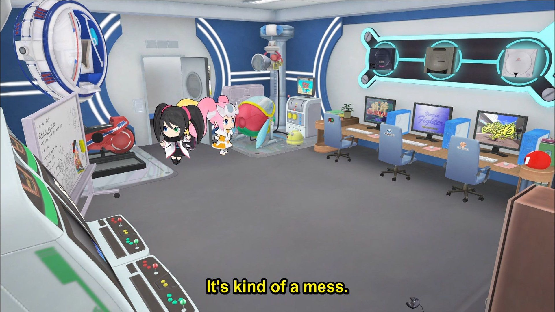 On the right wall you can find a Mega Drive, Saturn and Dreamcast mounted to a glowing panel. Below are three monitors displaying a game from each (These change mid-way through the season). At the beginning they show