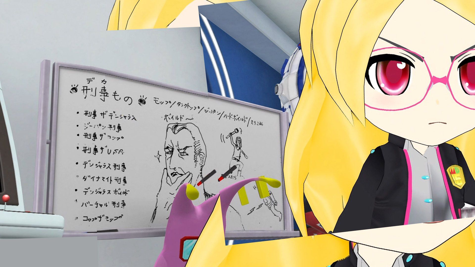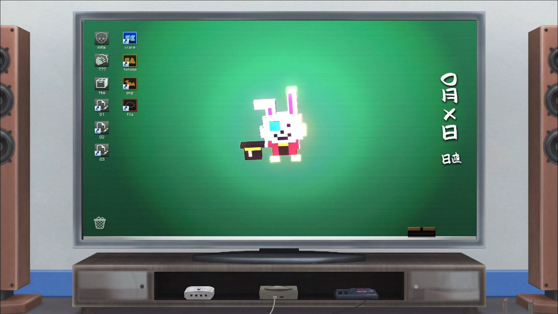 When Center-Sensei speaks, he usually appears on the PC style desktop on the big TV (though he does infrequently appear in other ways). There's not really anything of interest here, but adding this for completion's sake.
