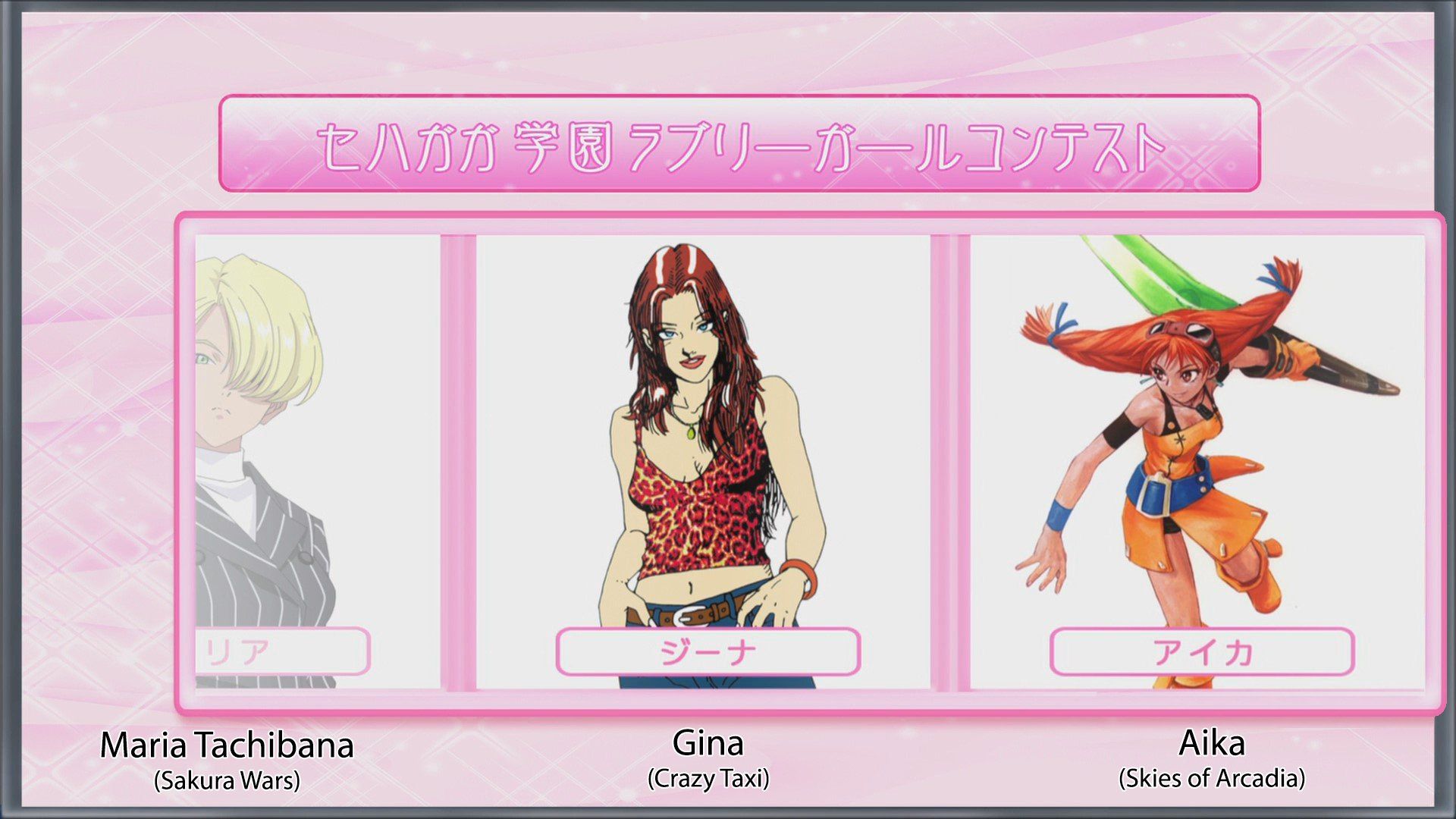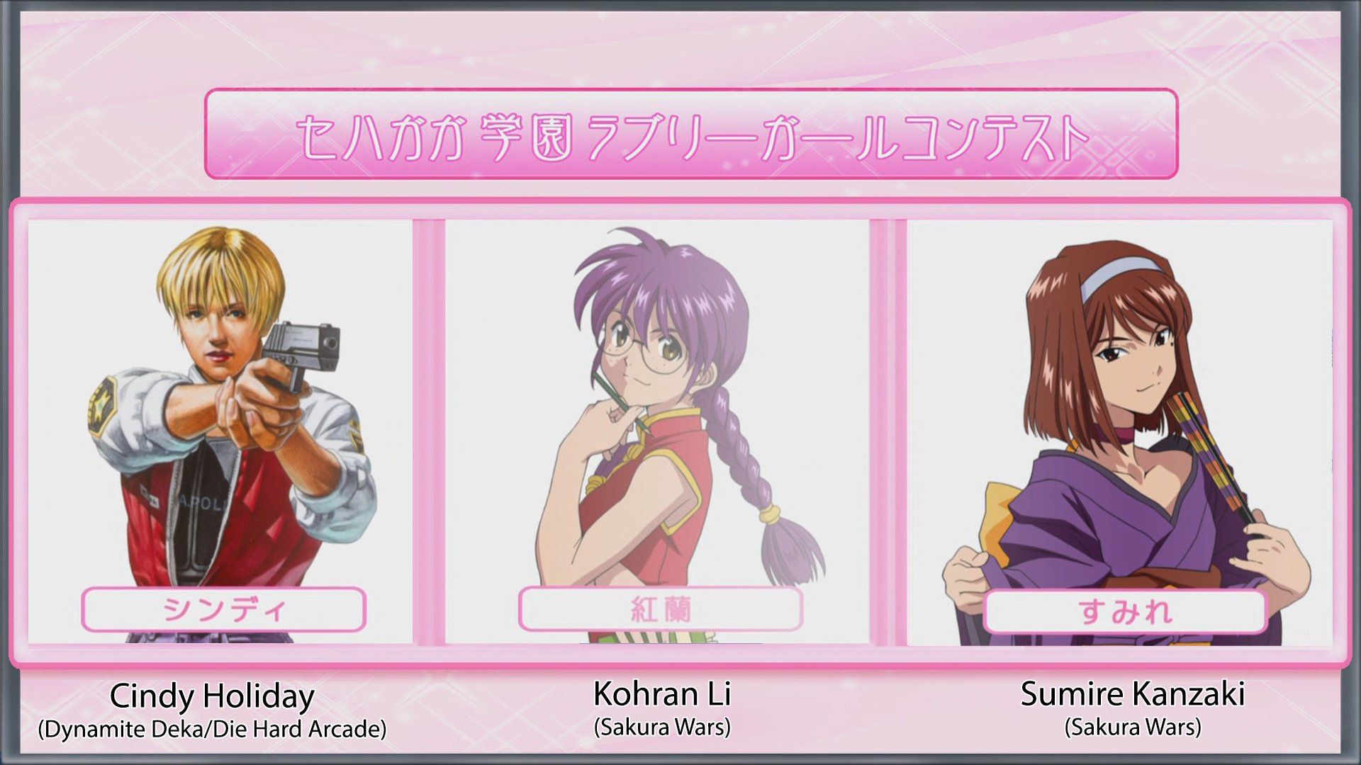 The rest of the girls (that aren't from Sakura Wars) are in this gallery. I won't delve too deep into each title, as you can look that up if you are unaware of a title, however the following characters are shown;