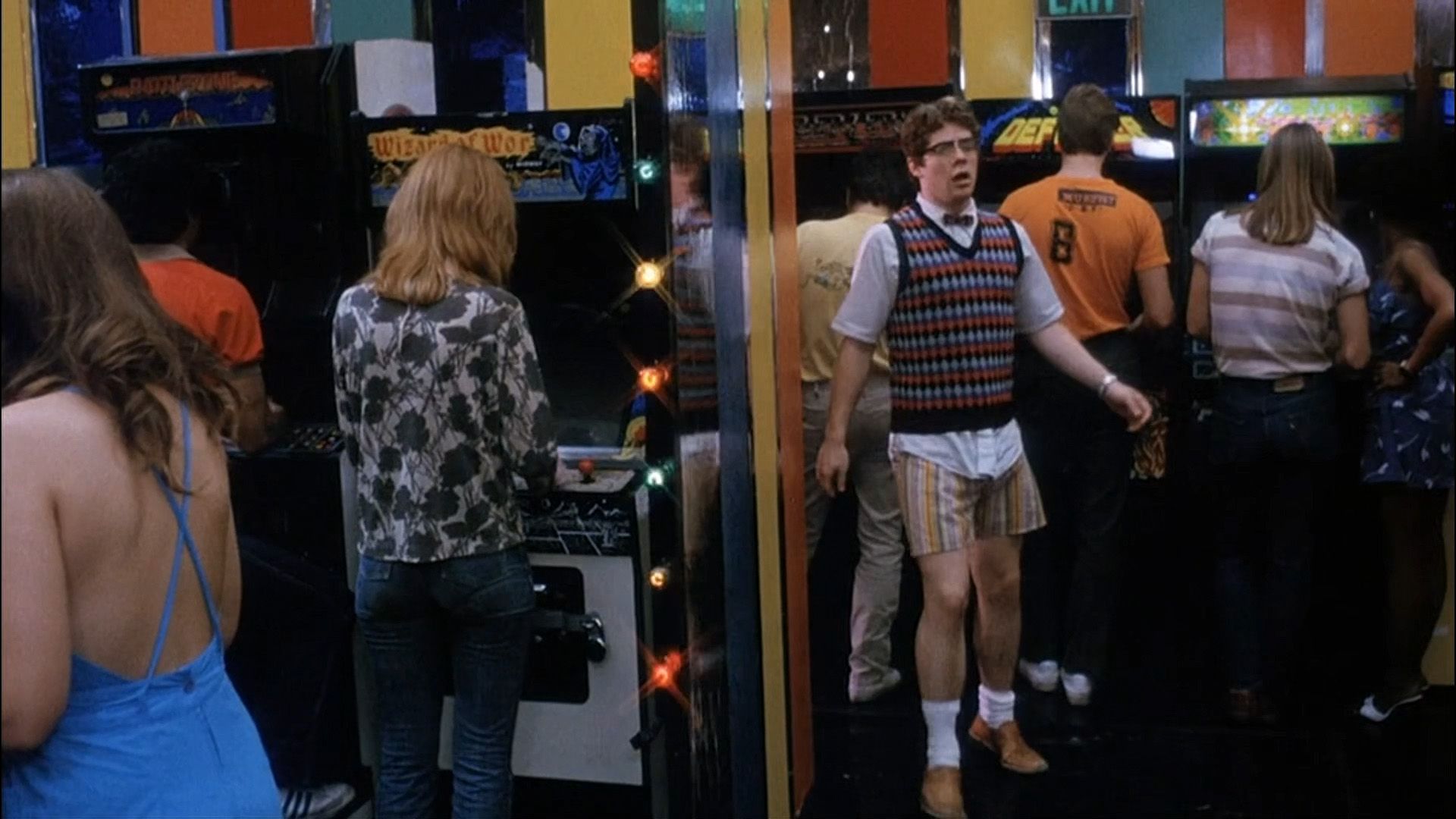 As mentioned above, the intro sequence is filmed in a completely different arcade to the rest of the movie, with a young woman playing the games who is never seen again. It is possible this footage was recorded as a proof-of-concept to gain funding for the full feature, which is why it never connects to the main narrative, and only serves as an intro point.