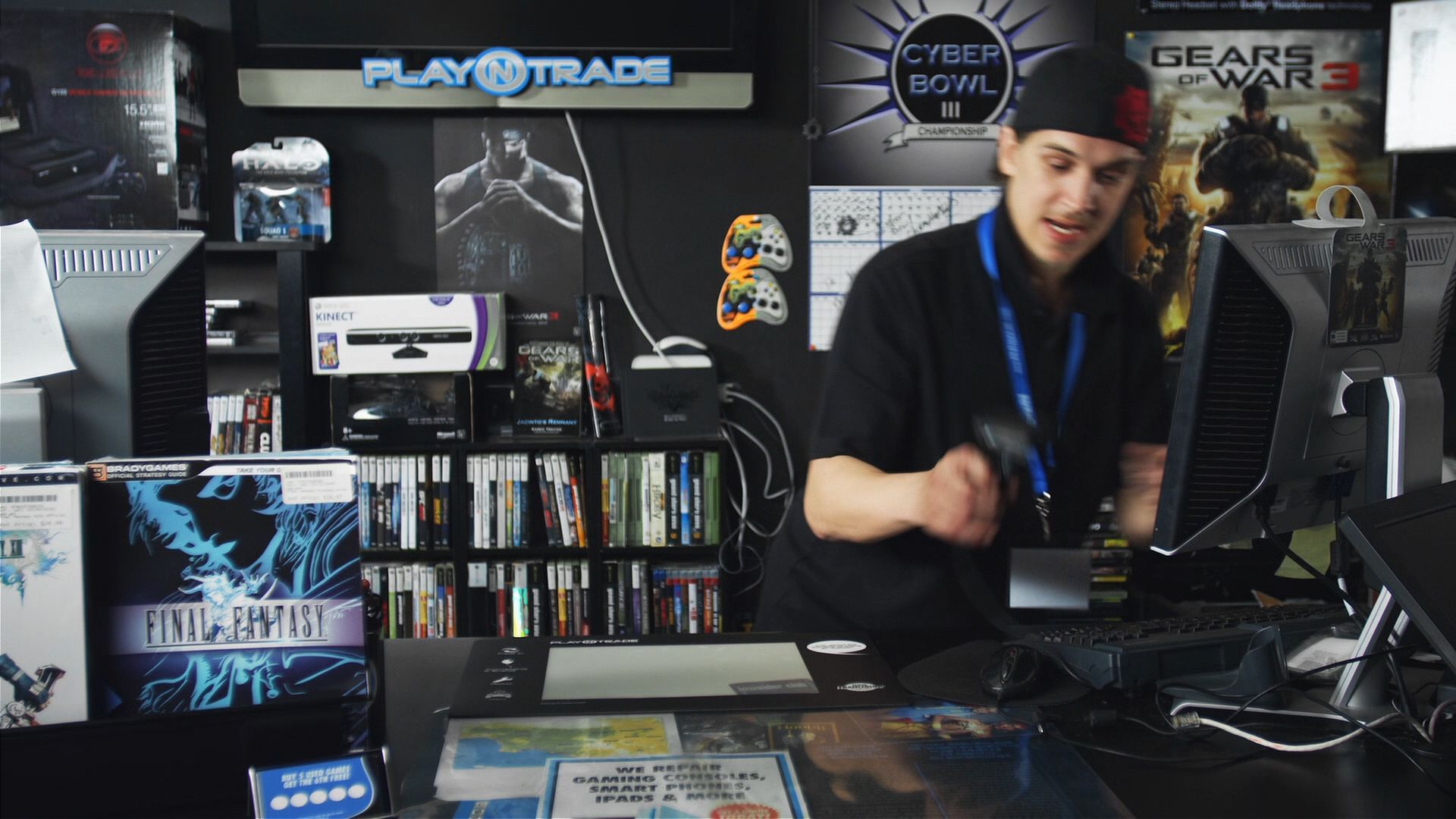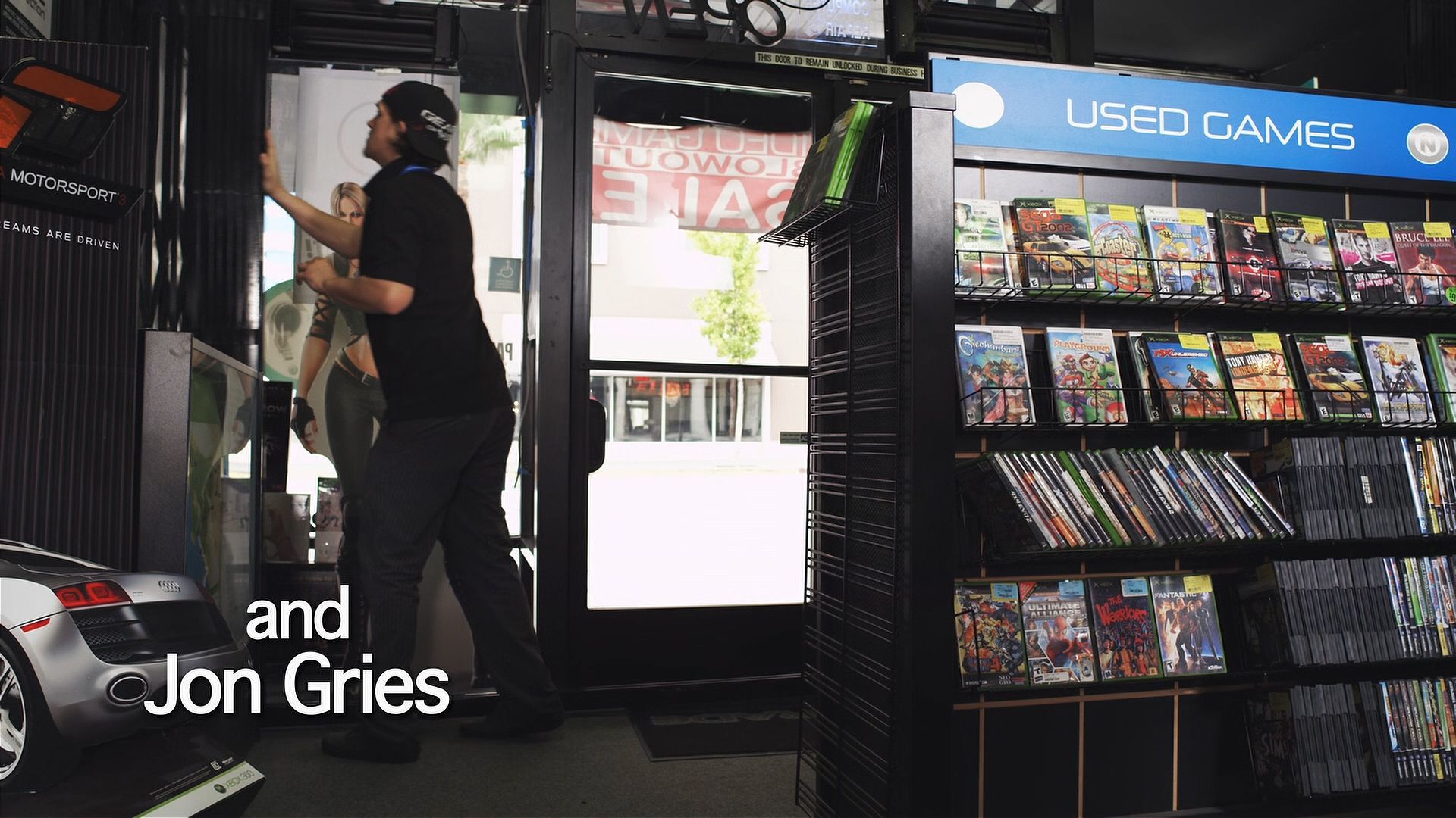 One of the main characters works in a gaming store (a surprisingly popular location in these kinds of movies), which includes a large scale Forza standee, and several shelves of used original Xbox, Gamecube and Nintendo Wii titles. Visible games include;