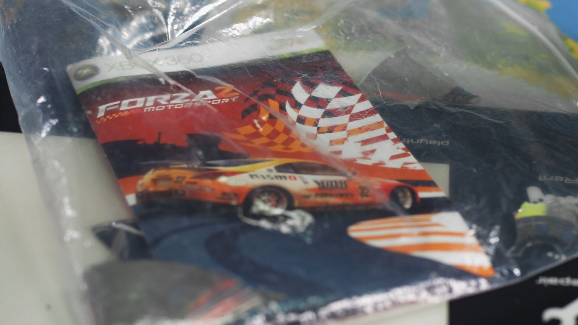 The irate customer returning a "broken game", is returning a copy of Forza 2. This would suggest the standee from earlier is for the original title, as the artwork doesn't match this case and booklet design.