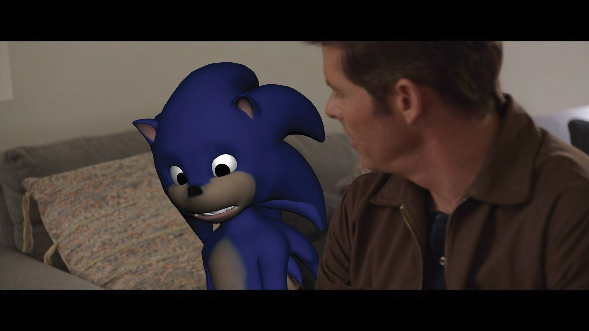 Before getting into the main movie, I thought I'd highlight some interesting tidbits from the deleted/alternate scenes. There was a rumour that the final Sonic design was always intended, and the grotesque and scary Sonic design in the initial teasers was faked to drum up attention. However in all the unfinished scenes, the Sonic model (while more basic) is a dead ringer for the original design. It's very unlikely they would have gone to this level of effort to fake outrage. The deleted/alternate scenes essentially prove the original design was intended for the final film before the backlash saw them change it.