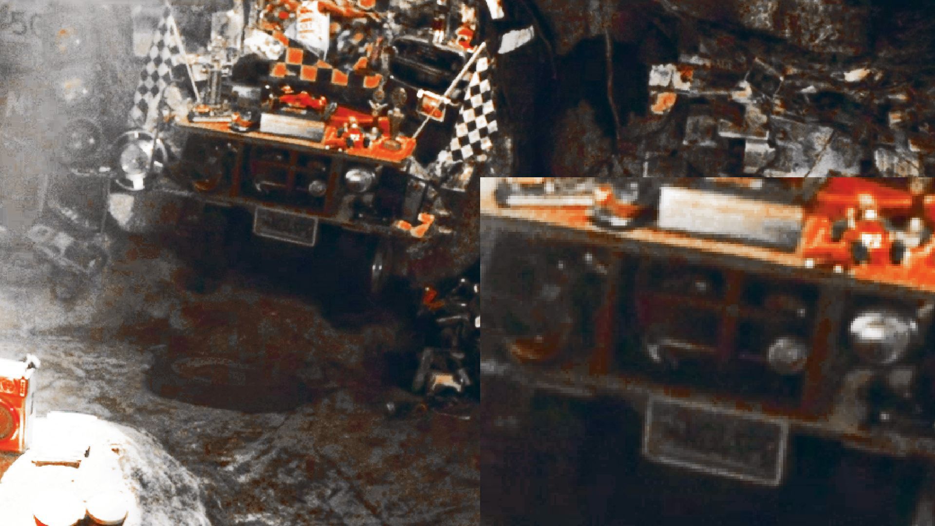 Sadly there's no close-up on this, I've tried to clear the image up as much as possible. It looks a bit like MND4-SPD, which could be interpreted as Mind For Speed, but I have yet to find a Crazy Taxi or otherwise numberplate that matches. Please let us know if you know what this is referencing.