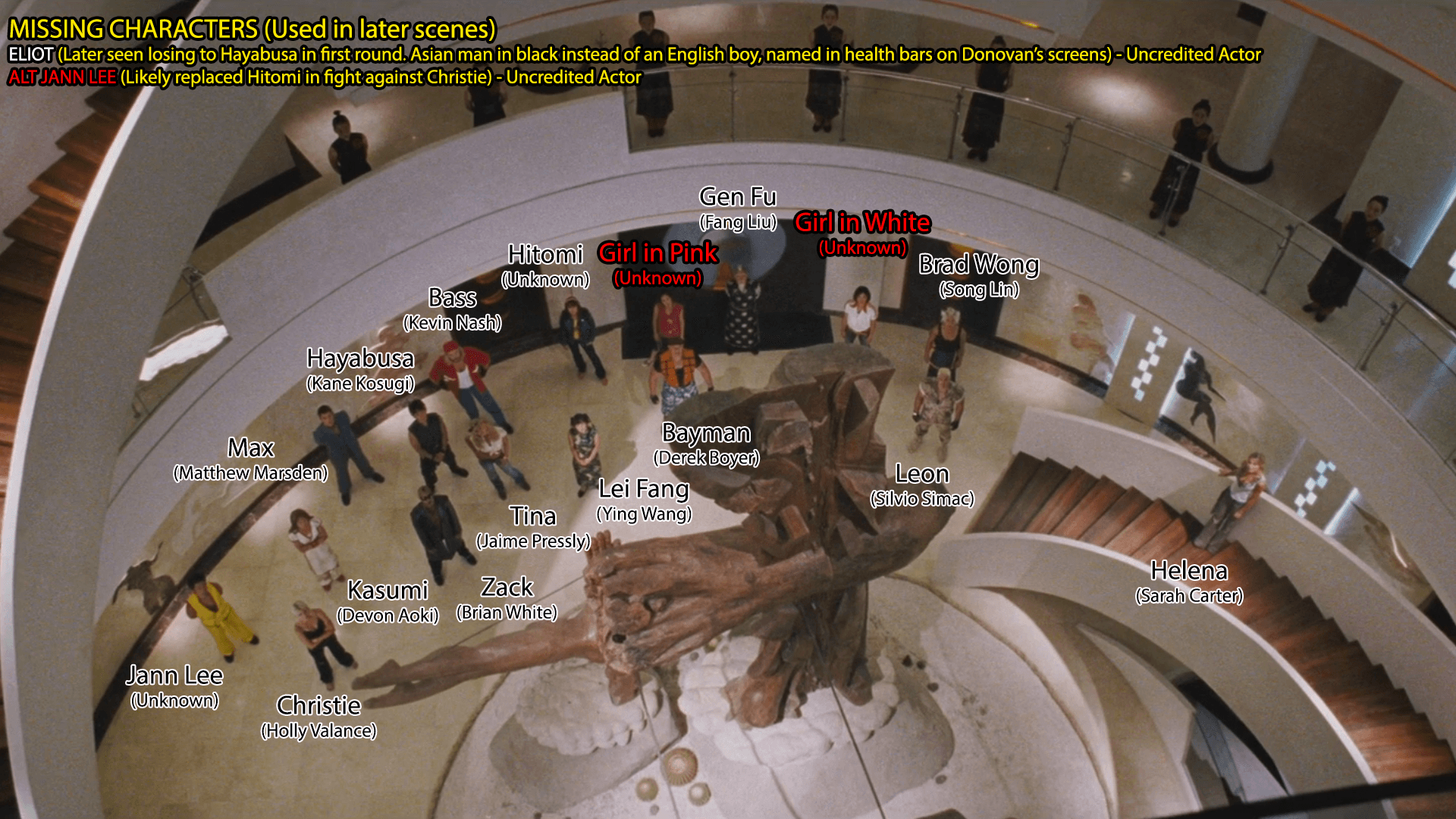 As you can see, this guy was missing from the Atrium and should have been disqualified for not being there before sundown. However the movie clearly names him as Jann Lee. Also worth noting is that this version of Jann Lee does only 3 moves the entire fight, in a repeating pattern.