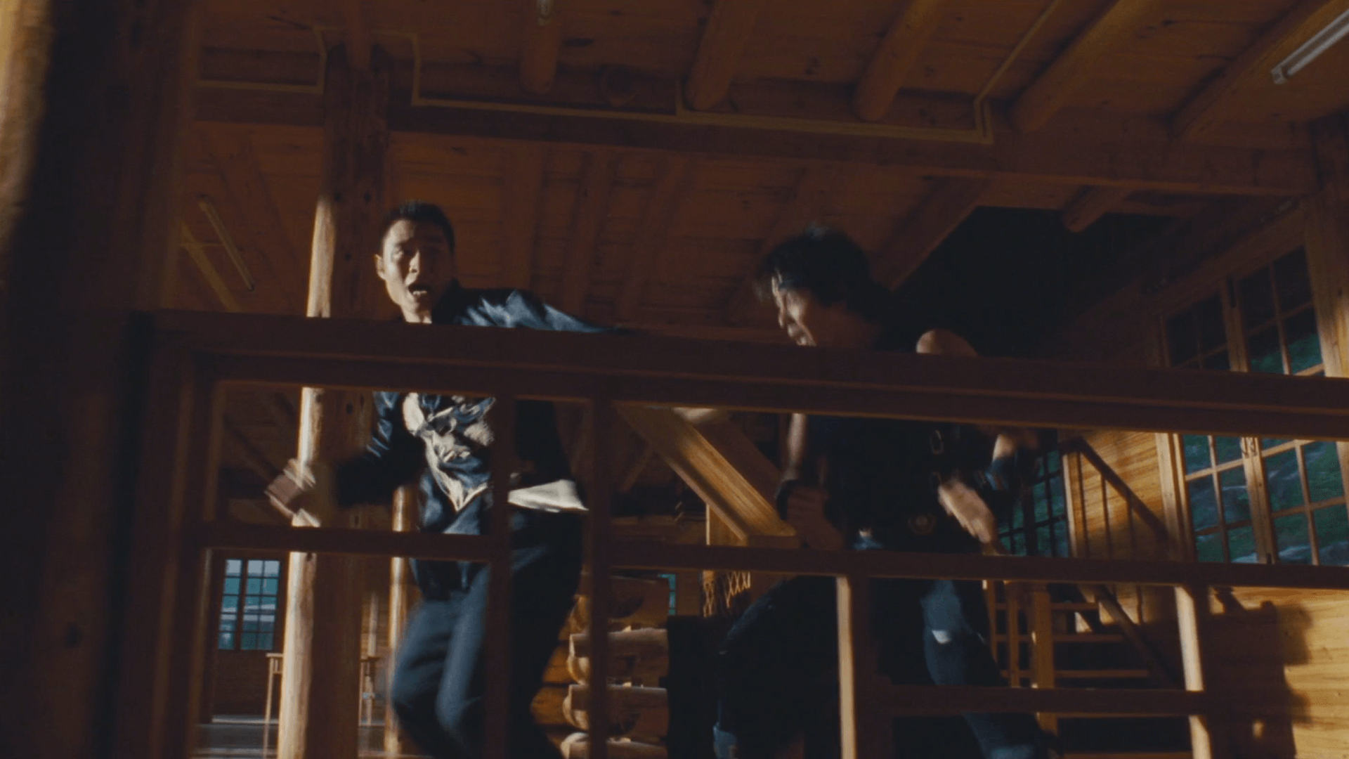 Also, his fight includes much more varied and better rehearsed fight choreography, as well as breakable set elements (Eliot kicks through several wooden railings and is thrown through objects twice). However, unlike the Man in Yellow, this guy never does any of Jann Lee's signature moves - suggesting he was never supposed to be Jann Lee and was always meant to be an additional character (whether he was originally supposed to be Eliot or not).