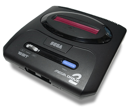 The Mega Drive 2 was a cost-saving new version of the original Mega Drive. It lost the volume slider, it lost stereo sound output completely and it was smaller - which means it is too thin if paired with an original Mega CD. In Japan they coloured the cartridge slot red, with a grey power slider and a blue reset button. By the time the console made it's way to Europe (and even later production runs of the Japanese model) the power slider was replaced with another button akin to the reset button. In Europe both buttons were red while the cartridge port was black.