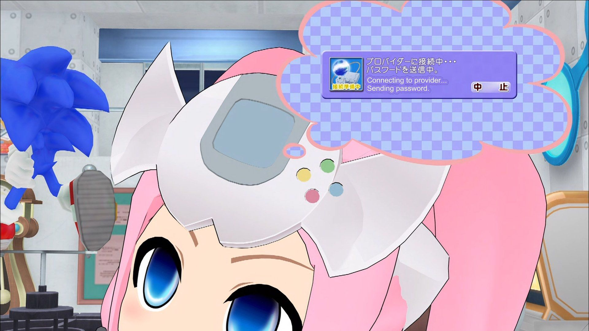 We begin with Episode 1 and Dreamcast's attempt to dial up to the internet to get some answers for Saturn. The camera zooms into her face, her eyes dullen, and we are shown the connection screen in a thought cloud. This screen is directly from Dream Passport 2, the Dreamcast web browser in Japan. They even play the sound effect of a dial-up modem scrambling audibly to connect.