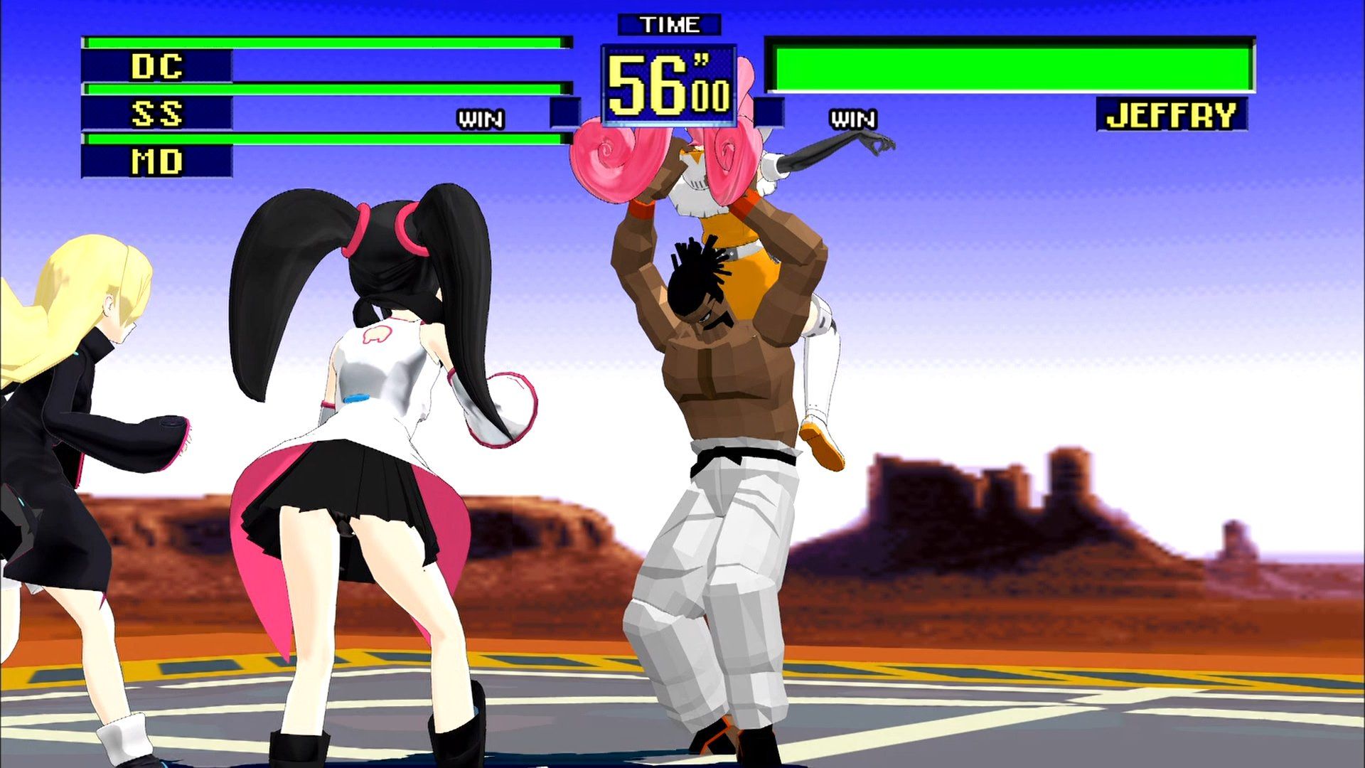 The third image is when Jeffry fights the Sega Hard Girls. Jeffry is another character from Virtua Fighter, so it's right that he appear in this game. The next set of appearances, however, aren't from Virtua Fighter.