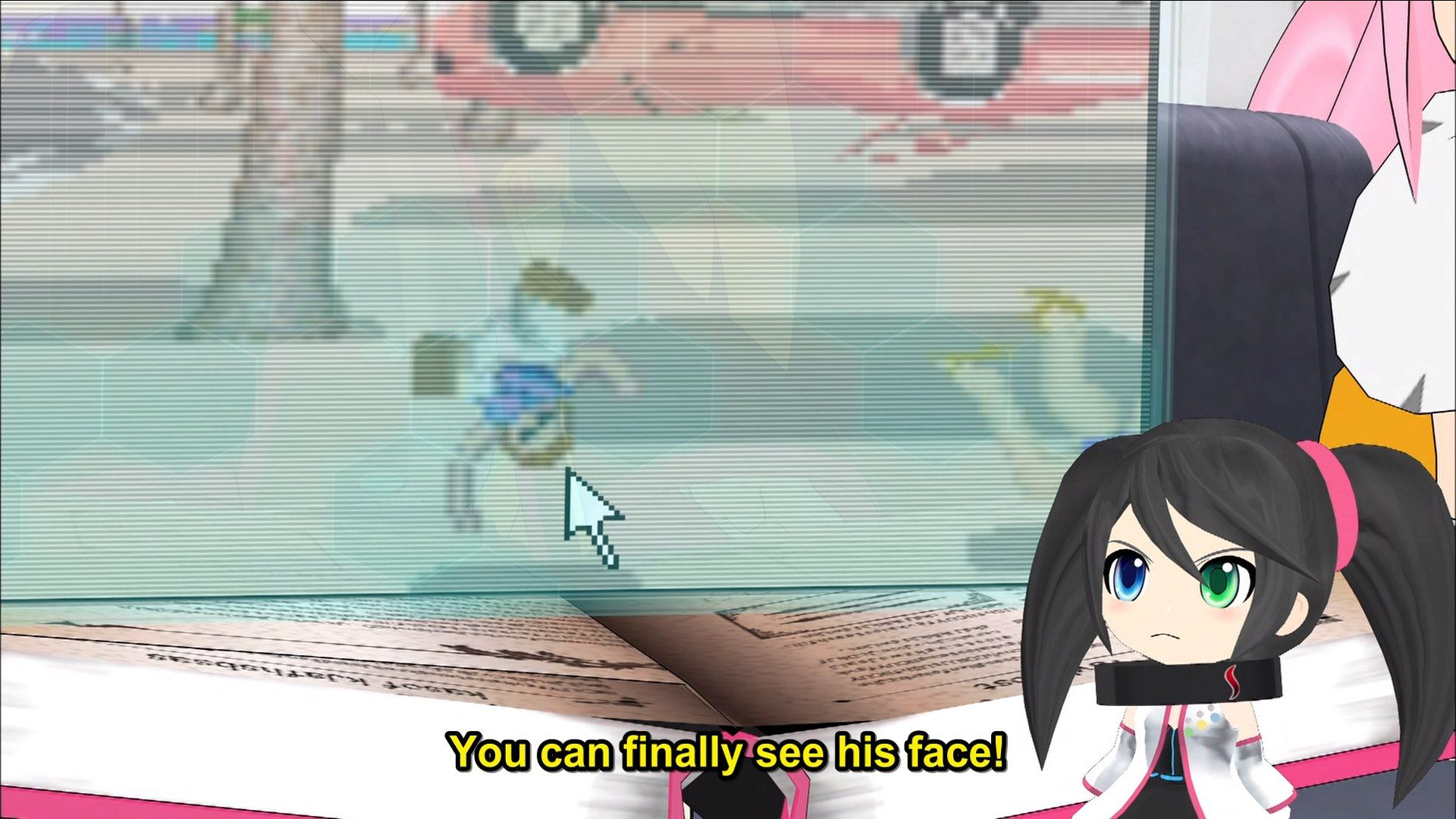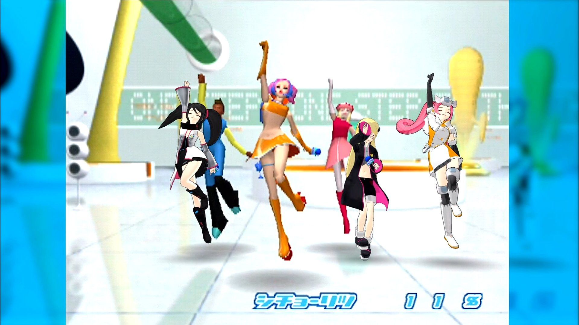 The third image shows the image quality when the girls are superimposed over recorded game footage. The Dreamcast only output 480p, whereas the Sega Hard Girls are rendered in at least 1080p. The mismatch in detail and cleanliness of the borderlines is obvious.