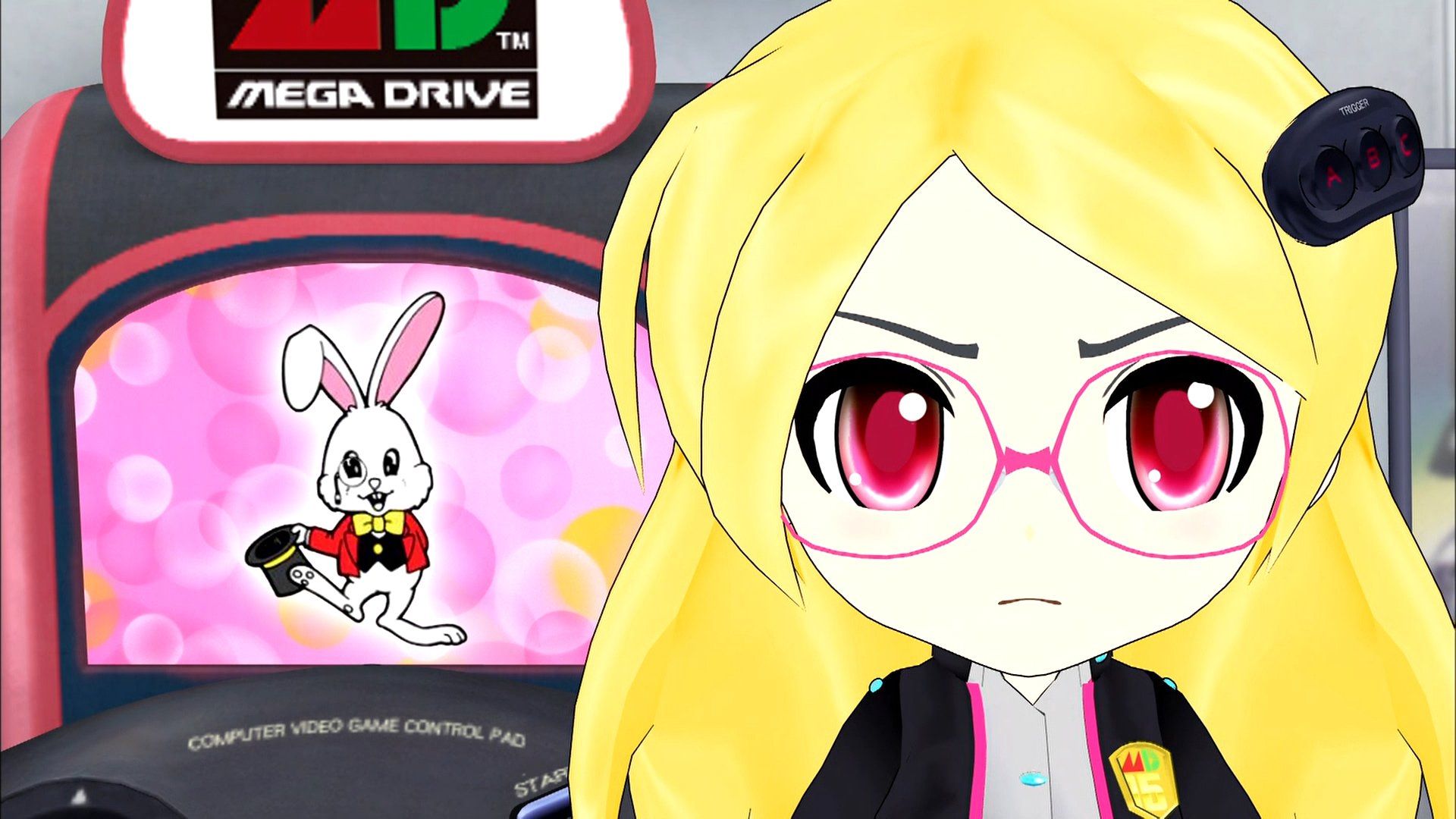 After unsuccessfully trying to train Saturn as a Weathergirl, Mega Drive gives it a go. On the screen behind her is the artwork of Professor Asobin, an anthropomorphic rabbit who stands as the first unofficial mascot of Sega. He appearing in almost every SG-1000 game manual from the console's launch on July 15th 1983, going so far as to make an appearance on some early Mark III (Japanese Master System) game manuals, and those of several Sega My Card titles. He would appear towards the back of the booklet and give out hints and tips for each title - however Mega Drive does speak about this later in the series and states some of the "advice" was horrifyingly useless.