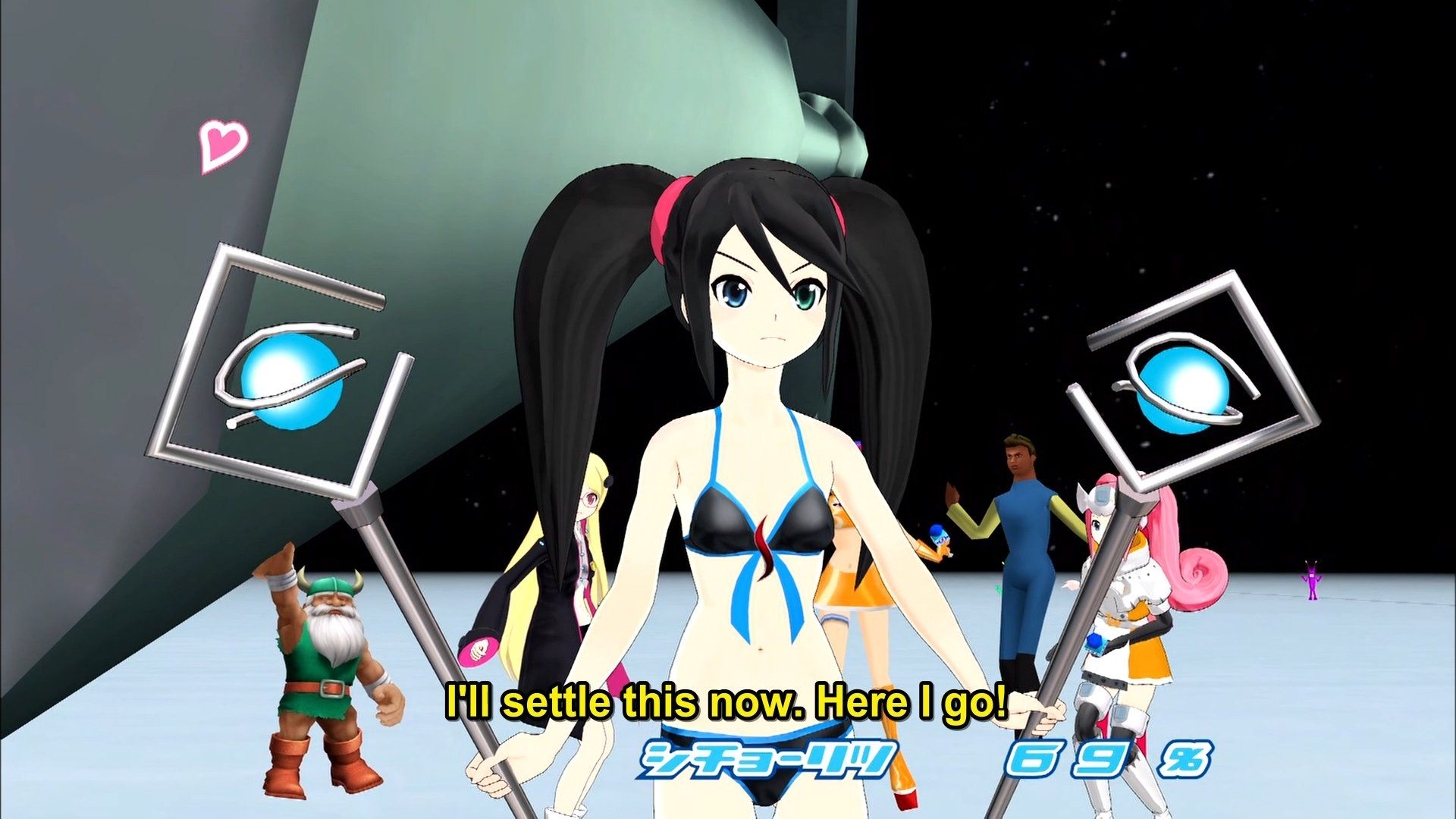 Towards the end, we enter the world of Space Channel 5 (A Dreamcast dance game, based on an idealised 1960's fashion). In this particular episode, the entire scenery is a rebuild of the one from the game (there's a few differences), however the footage would be blended with game captures in the next episode (notable by a drop in visual quality whenever it does).
