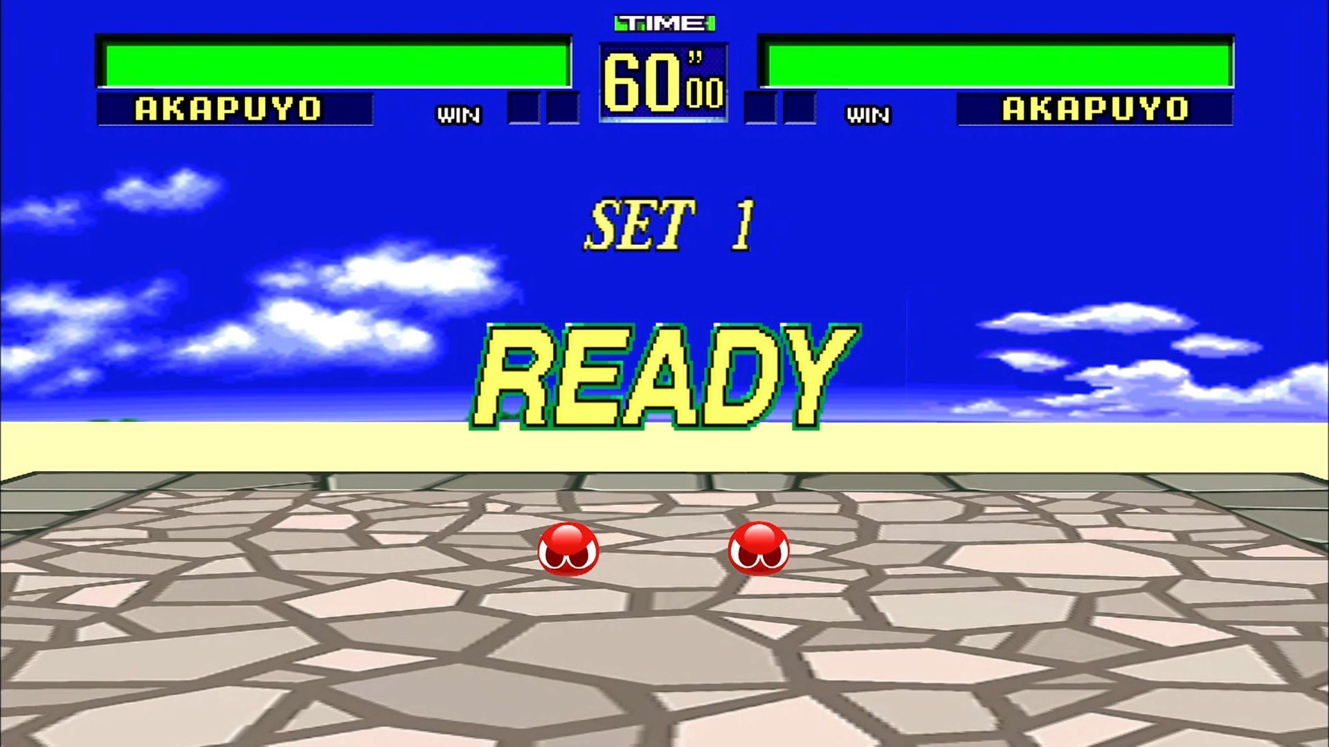 Saturn suggests crossing Puyo Puyo with Virtua Fighter, and the result is simply having the Puyos blend with each other and ending the fight in a tie.