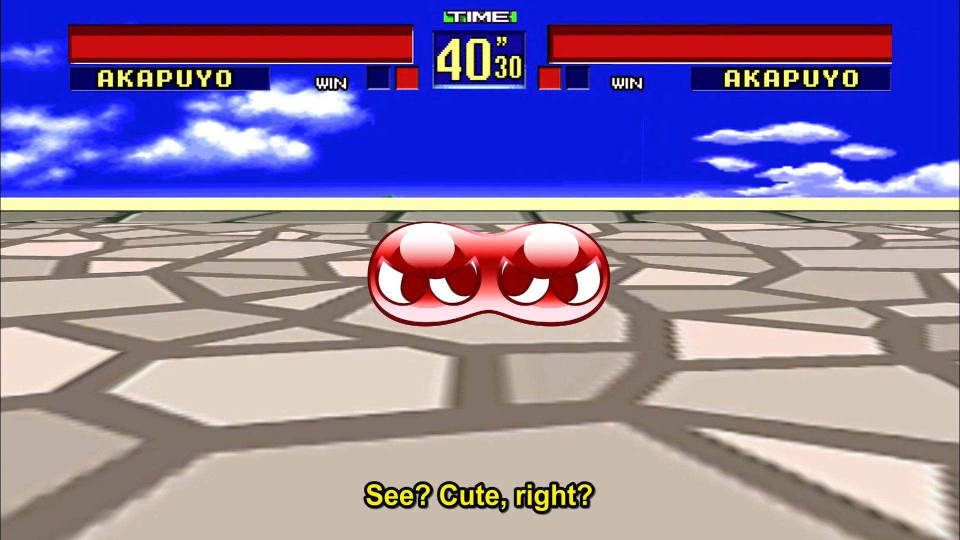 You can see in the above images that the regular puyos are rendered in the Sega Hard Girls engine, but when they are blended together they become hand drawn artwork.
