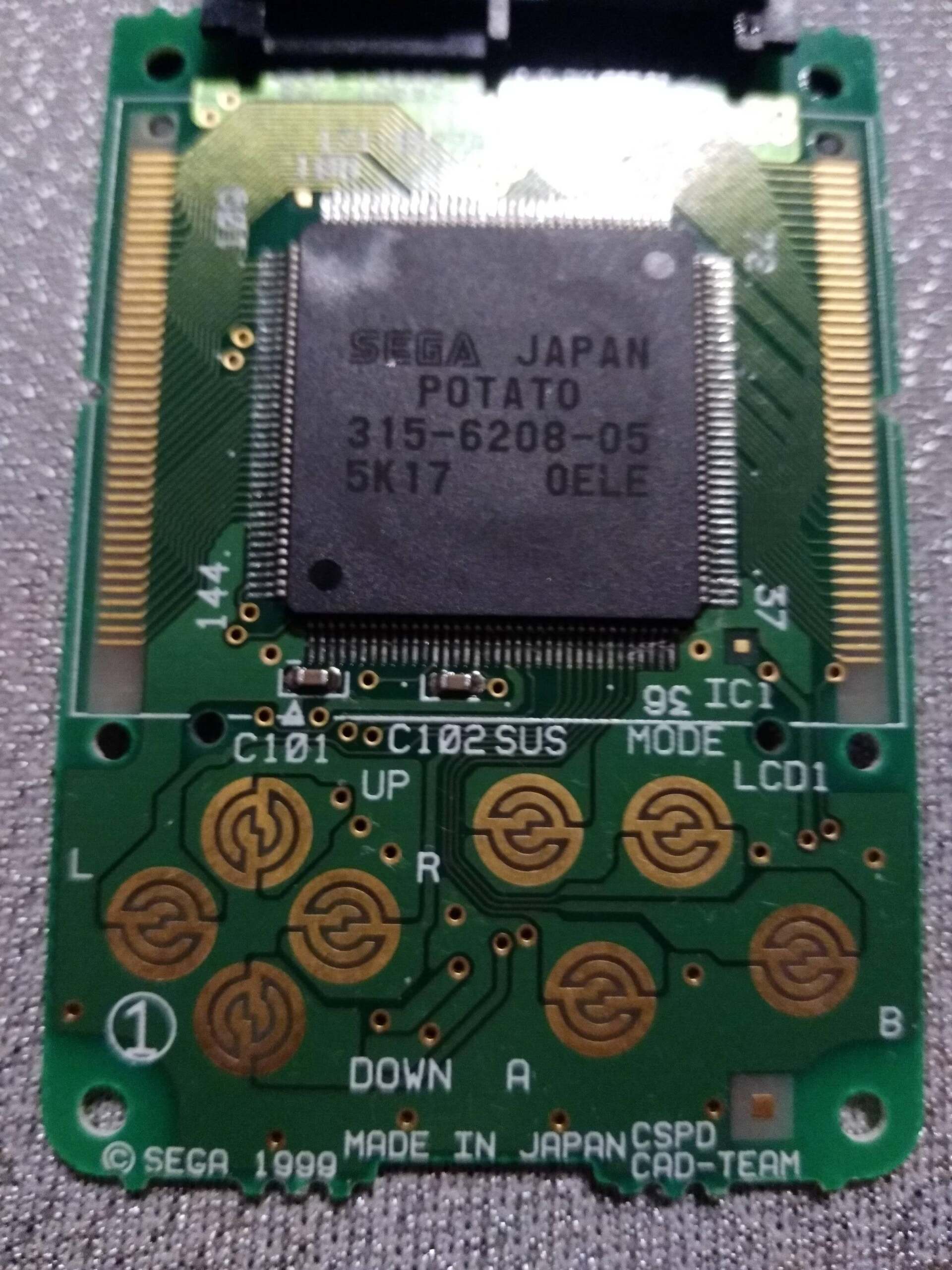 Now this might be a bit of a stretch, but the Potato Chips bag might also be a reference. I can't find any direct references to the brand "Callme" online, nor the man on the cover. However, as you can see in Image 3, the Sega Dreamcast VMU memory cards included a chip on the inside that were printed with the word "POTATO" for some odd reason. So they're either a reference to real world potato chips, or the VMU's potato chip.