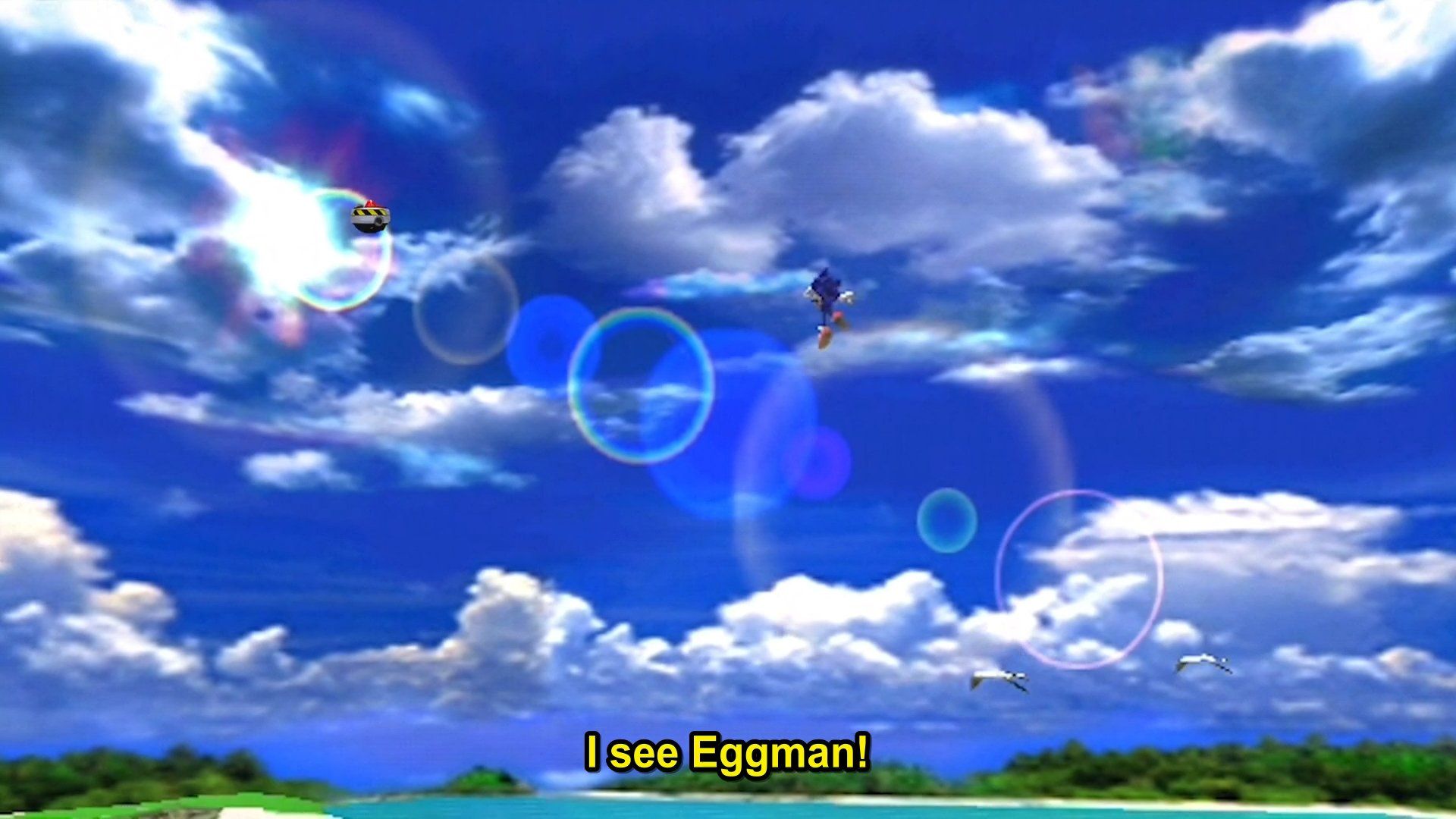 The final image shows Sonic in the world of Sonic Adventure (1999), with Eggman in the distance. Compared to Eggman's earlier appearance in Border Break, this is far better made. He's been slapped on in Photoshop on both occassions, but in this image there's no massive black border and he just blends into the environment a little better.