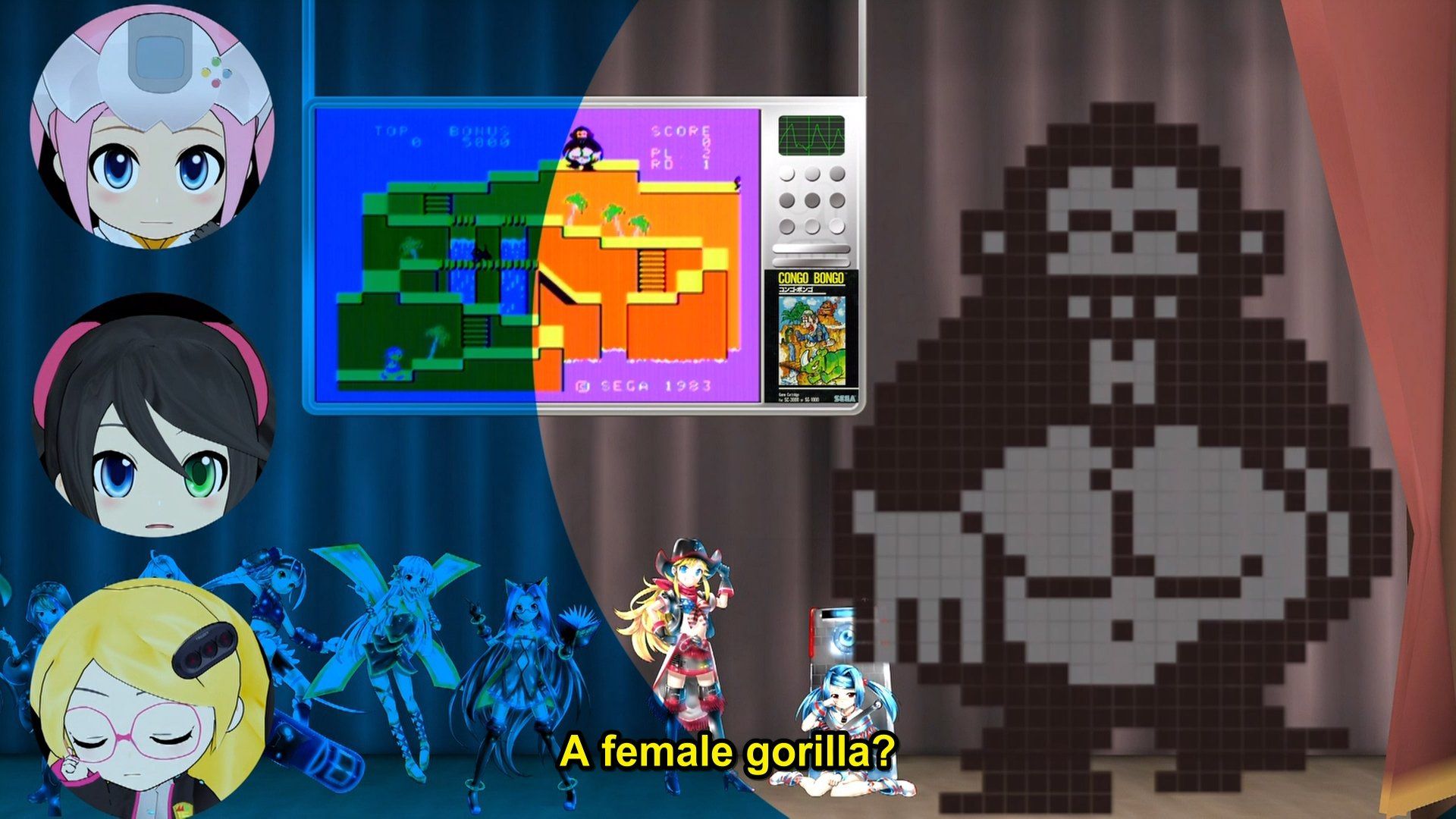 I'm going to jump to the final reference of the episode, which is the reveal of Bongo the Ape from Congo Bongo, apparently female according to the Sega Hard Girls show (though this isn't explicitly stated in the game). Congo Bongo (also known as Tip Top) was released in Arcades in 1983, and soon saw a Sega SG-1000 port that same year.