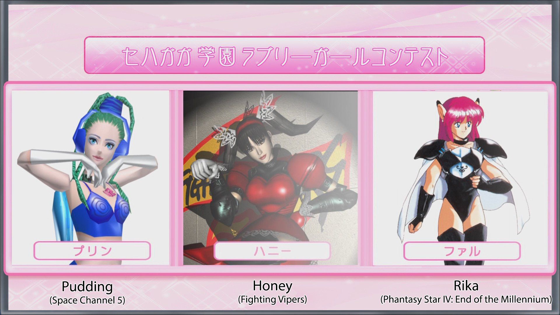 So we now start the long list of women mentioned in the Lovely Girls competition. If you were ever curious as to how many female characters Sega had, then buckle in - and this isn't even every female character they have! Bear in mind the series as a whole focusses strongly on franchises popular in Japan, so there's going to be a large chunk of popular characters missing.