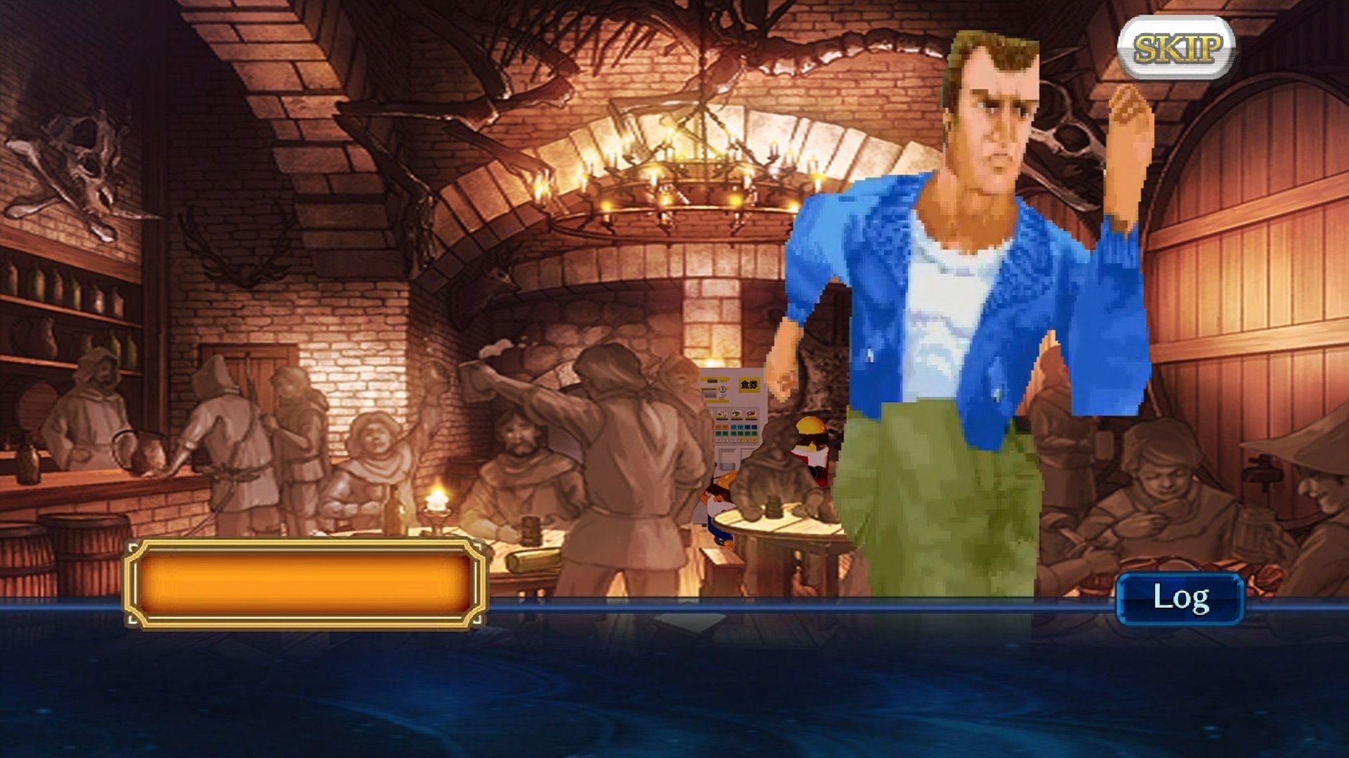 The last screen in the Tavern with references is when a crowd bursts in - all made up of character artwork across multiple Sega titles. I've had to try and stitch them together here as characters wind up behind others (to the point of not being visible) and bits of scenery.