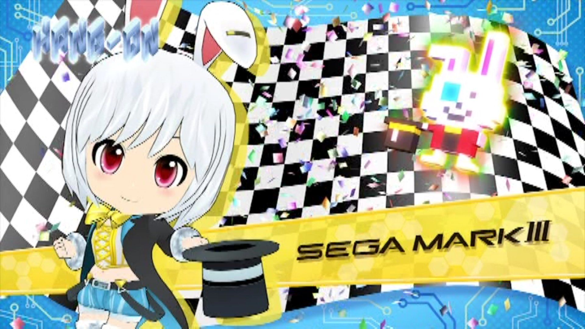 IMAGE 1: Sega Mark III - A girl with bunny ears and a top-hat, she's got clear design elements that are similar to Professor Asobin (see our previous articles), which in turn share a similarity to Center-Sensei - even her pose here is identical. She's played as something of a magician.