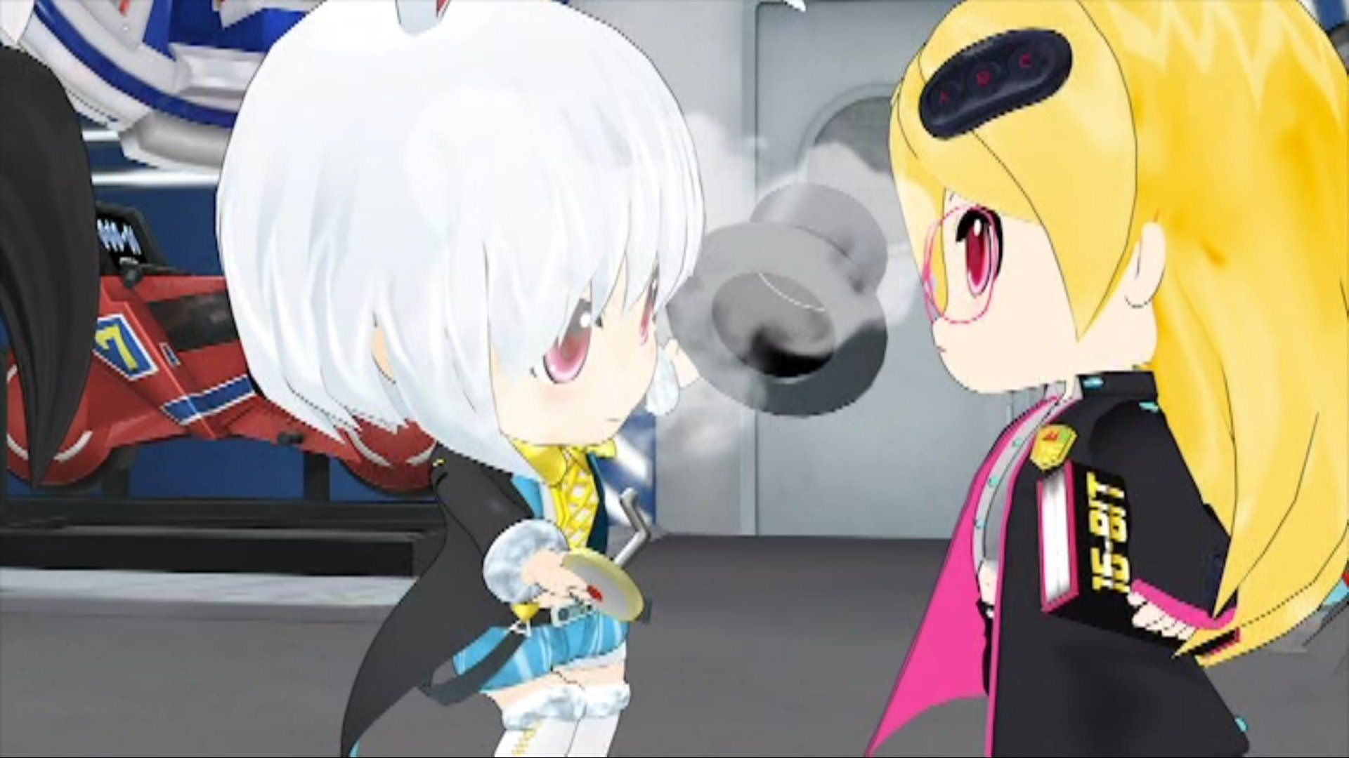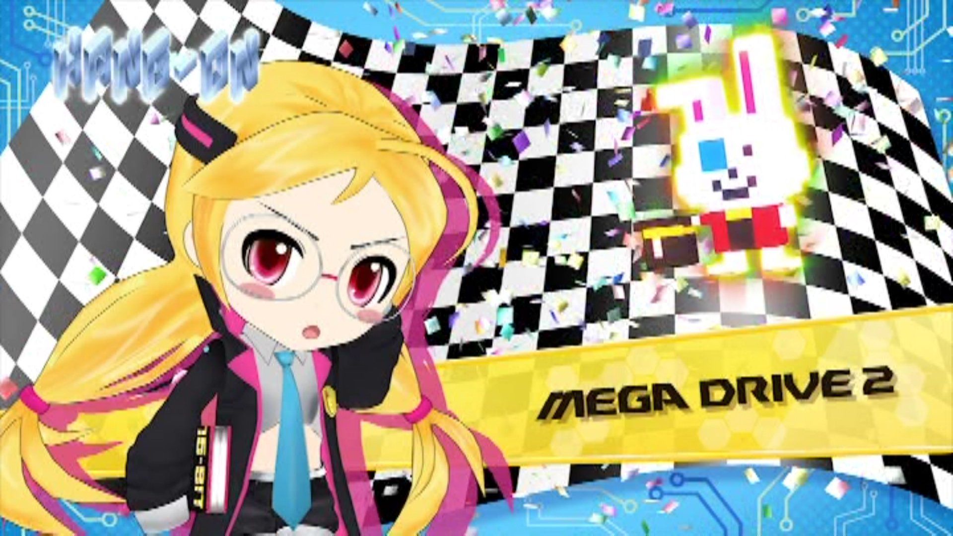 IMAGE 4: Mega Drive 2 - The younger sister to Mega Drive, she's dressed very similarly but the clothing is oversized, she wears a blue tie and her hair is different. She acts like a stereotypical younger sister, always calling on her older sibling. I've always found this particular design disappointing, as it's not different enough from Mega Drive whereas the visual differences between the hardware were much clearer. Considering a chibi 3D character had already been made for Game Gear (it's briefly visible in Episode 8) I think she would have been a more visually interesting character to include instead.