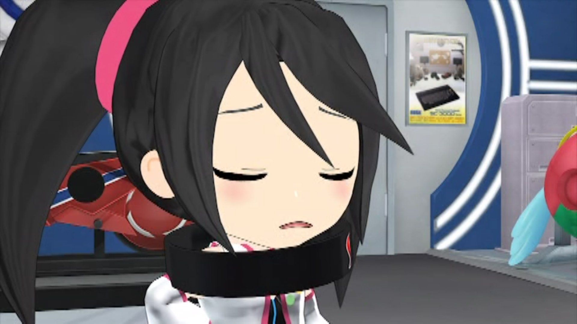 However Sega Mark III has a present for Mega Drive - the training wheels she was given (and humiliated by) during the girls' adventures in Jet Set Radio. That would place this episode (if we were establishing a canon) between either Episode 10 and 11, or between Episode 11 and 12 (Episodes 12 and 13 run into one another). It is possible someone switched the poster back to the SC-3000 one after the Jet Set Radio adventure, but it's just a piece of trivia worth mentioning.