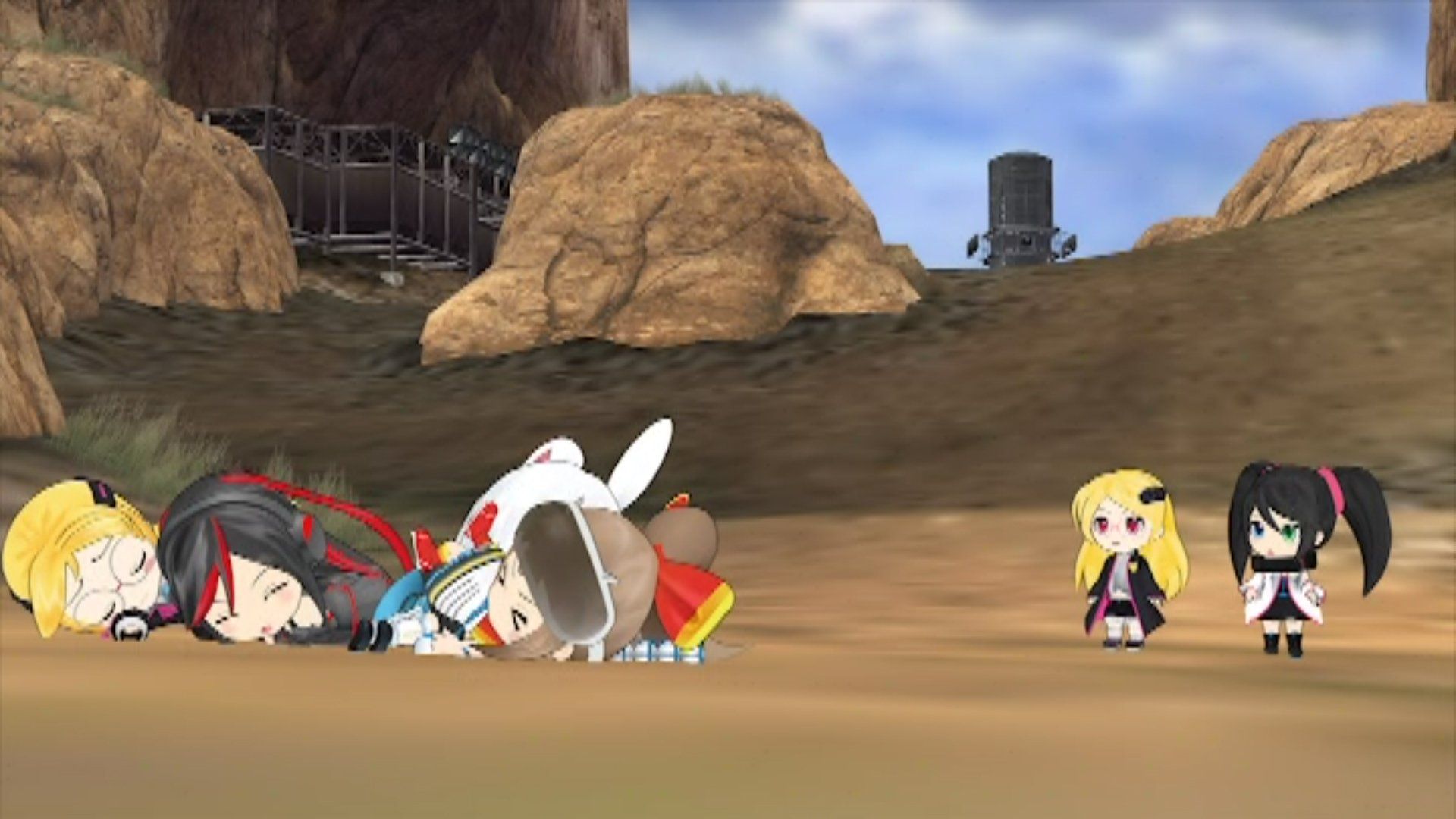 The fourth leg is in Border Break. Mega Drive and Saturn appear (before Dreamcast, oddly) to find the 4 new girls in a crumpled mess. We never find out what happened to them after choosing an alternate door from the main trio during the Virtua Fighter Kumite.