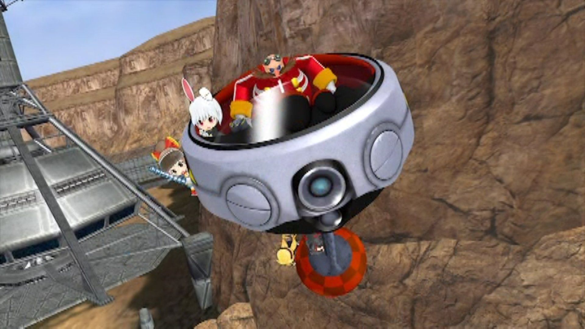 Sega Mark III, Master System, Robo-Pitcher and Mega Drive 2 all get Eggman as their ride, his Egg-o-Matic still carrying the Wrecking Ball (he'd probably go faster if he dropped it).