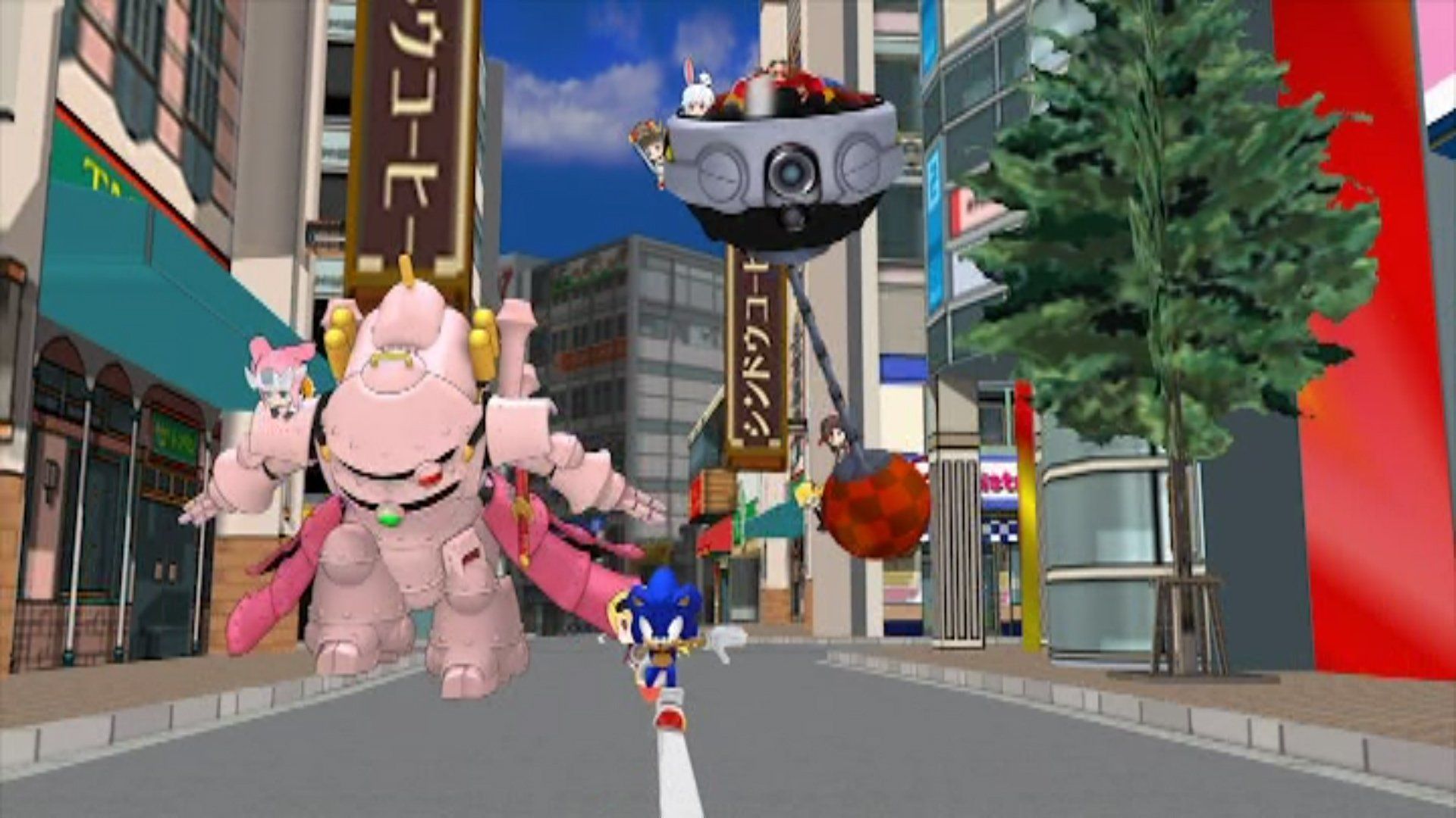 Dreamcast gets Sakura from Sakura Wars as her ride, leaping above Eggman's vehicle and racing to catch up to Sonic.