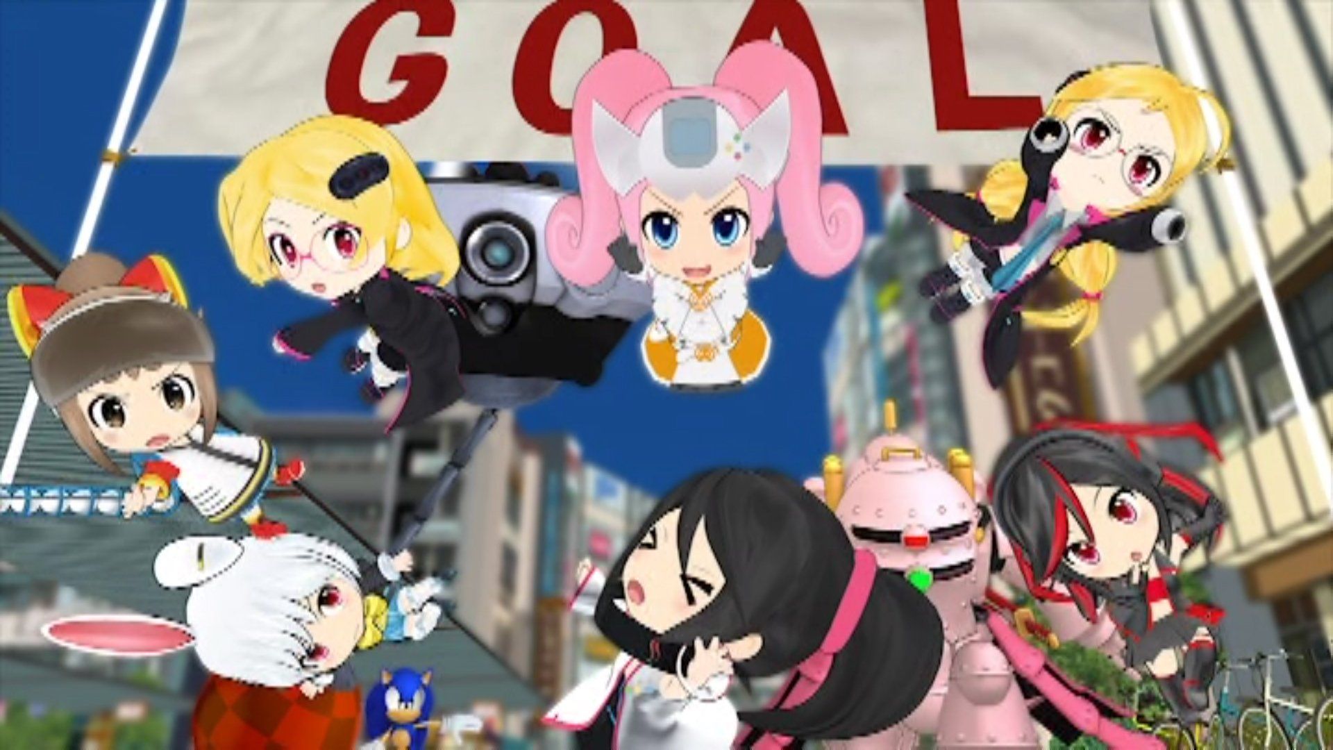 They all make it to Jet Set Radio's Shibuya-cho, aiming for the finish line at the Shibuya Bus Terminal.